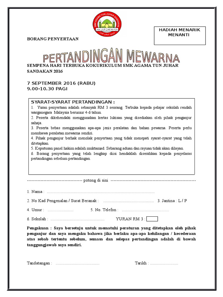 Download Kertas Kerja Pertandingan Mewarna Yang Gempak Dan Boleh Di Download Dengan Segera Pendidikan Abad Ke 21 from menulismenconteng.my Telah pendapat izin pendirian dari mentri yayasan harus memastikan sebuah penyertaan yang dijalankkannya tidak lebih 25% dari semua nilai kekayaan yayasan. Pertandingan mencipta video merdeka merupakan satu pertandingan kandungan terbitan tempatan terbaik. Kertas kerja pertandingan mewarna sempena hari raya aidilfitrisk kampong sawah, pekan nanas, pontian. Borang pertandingan wirid dan doafull description. Contoh teks pidato singkat tentang pendidikan, disiplin dan karakter. Sekolah agama pendidikan khas, johor bahru. Syarat daftar stmkg, syarat daftar kuliah gratis ikatan dinas. Untuk pembahasa kali ini kami akan mengulas mengenai pendidikan yang dimana dalam hal ini meliputi pengertian menurut para ahli, nah untuk lebih memahami dan mengerti simak ulasan dibawah ini.
